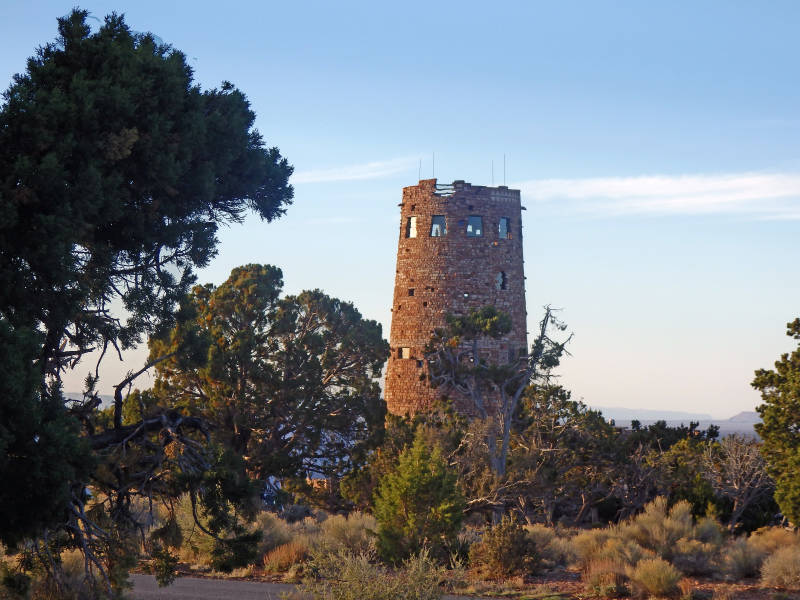 Net voor je bij de uitgang komt van het park vind je het Desert View uitkijkpunt. Hier staat een stenen uitkijktoren die je kunt beklimmen voor een nog beter zicht over de omgeving. Op deze plek is ook een supermarkt, een benzinepomp en een souvenirwinkel.