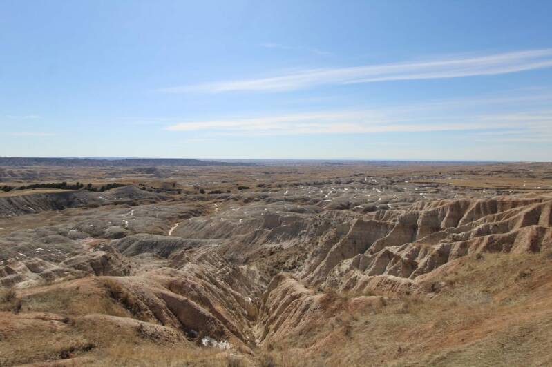 Er zijn verschillende stops langs de weg, die allemaal een prachtig uitzicht bieden op de Badlands en op het Buffalo Gap National Grassland, een beschermd gebied wat aan het park grenst.